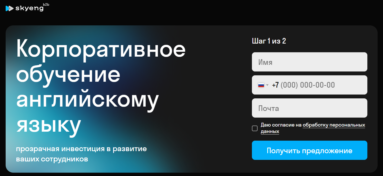 Прозрачная инвестиция в развитие персонала. Программа основана на 10 годах лидерства Skyeng на рынке EdTech, используется более чем 4500 компаниями. Курс нацелен на достижение важных бизнес-результатов: укрепление лояльности, повышение эффективности работы, улучшение коммуникаций с международными партнерами. Обучение проводится на собственной онлайн-платформе, включает индивидуальные уроки, разговорную практику, тесты с упражнениями в мобильном приложении. Преподавательский состав насчитывает более 15000 специалистов, прошедших строгий отбор.