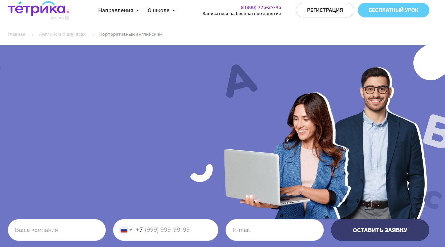 - Корпоративный английский от Тетрика — программы адаптированы под конкретную сферу деятельности и бизнес-планы компаний, работающих на международном уровне.