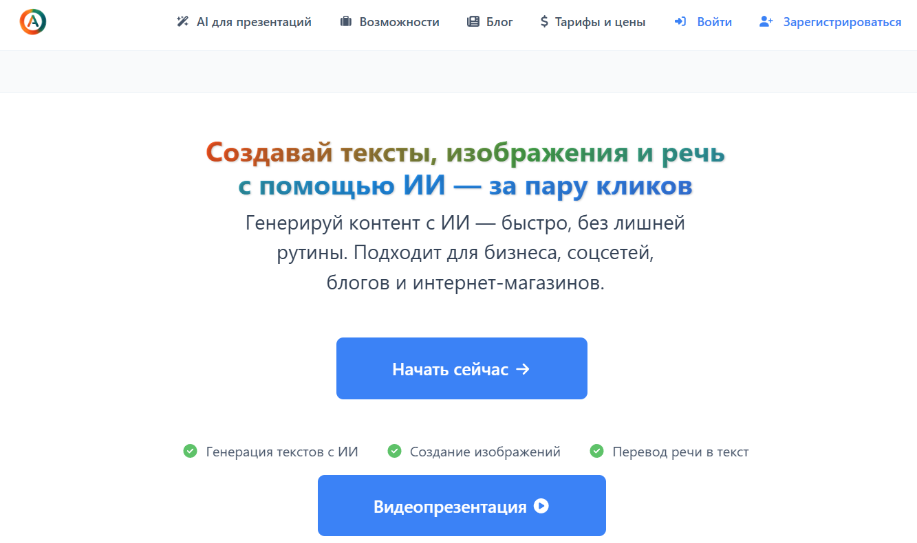 - ИИ доступна через браузер без необходимости установки дополнительных программ