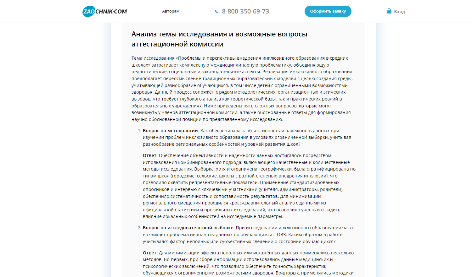 15. Подготовка к вопросам комиссии. «Проанализируй тему исследования 'Проблемы и перспективы внедрения инклюзивного образования в средних школах'. Сформулируй 5 каверзных и сложных вопросов, которые могут задать члены аттестационной комиссии (по методологии, выборке или этическим аспектам). Для каждого вопроса предложи аргументированный, спокойный и научно обоснованный вариант ответа, который снимет возможные возражения». Попробовать промпт.