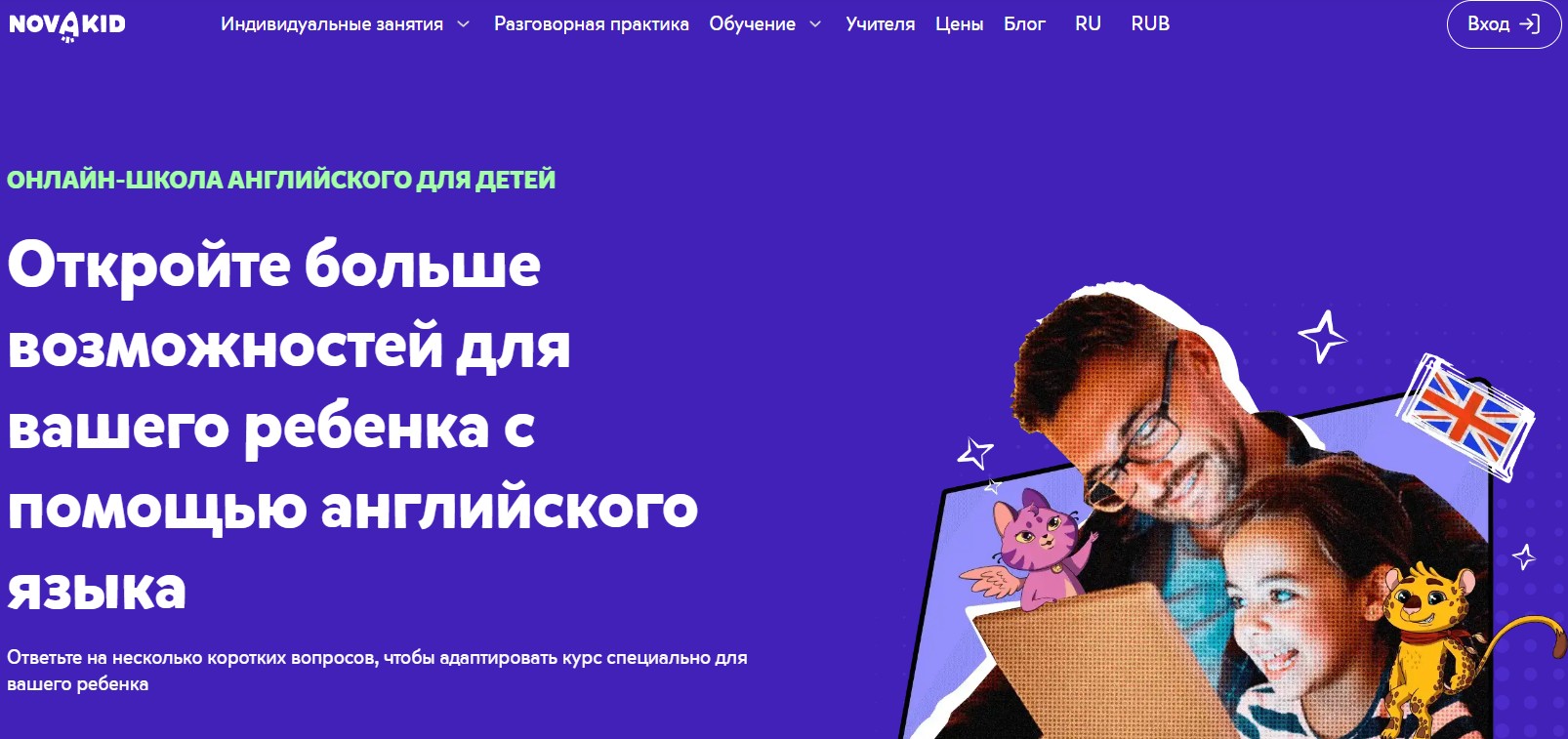 - Novakid — платформа интерактивного английскому для детей, с играми, яркими материалами и сертифицированными преподавателями-носителями.