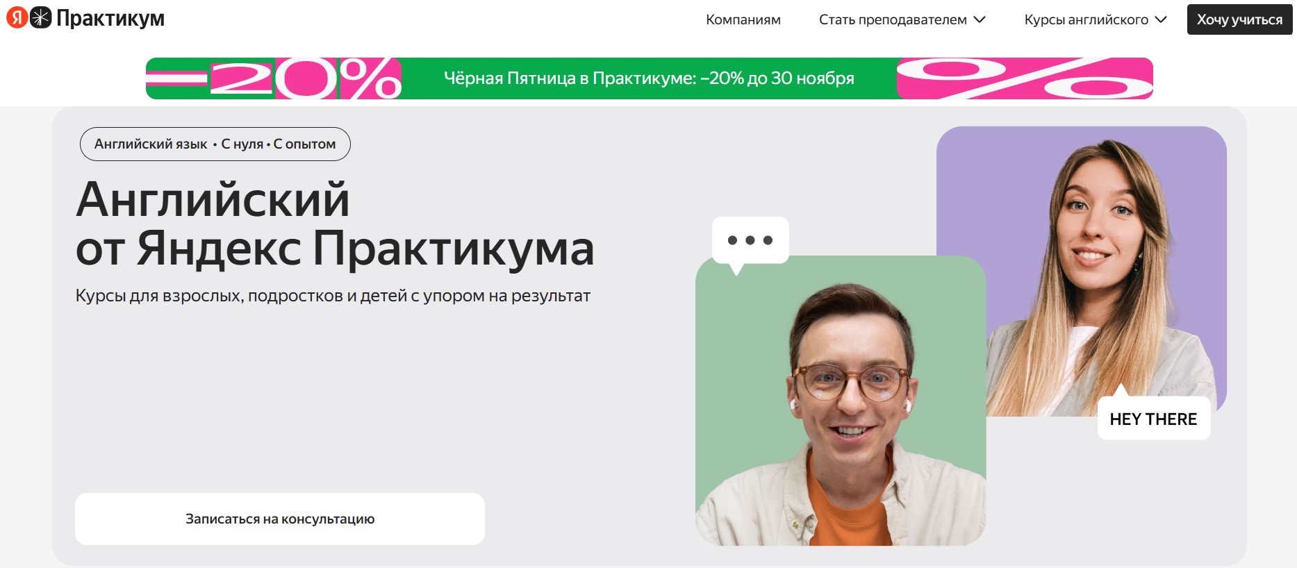 - Яндекс Практикум — онлайн‑курсы английского для взрослых с гибким форматом, практическими задачами, поддержкой наставников и перспективами карьерного роста.