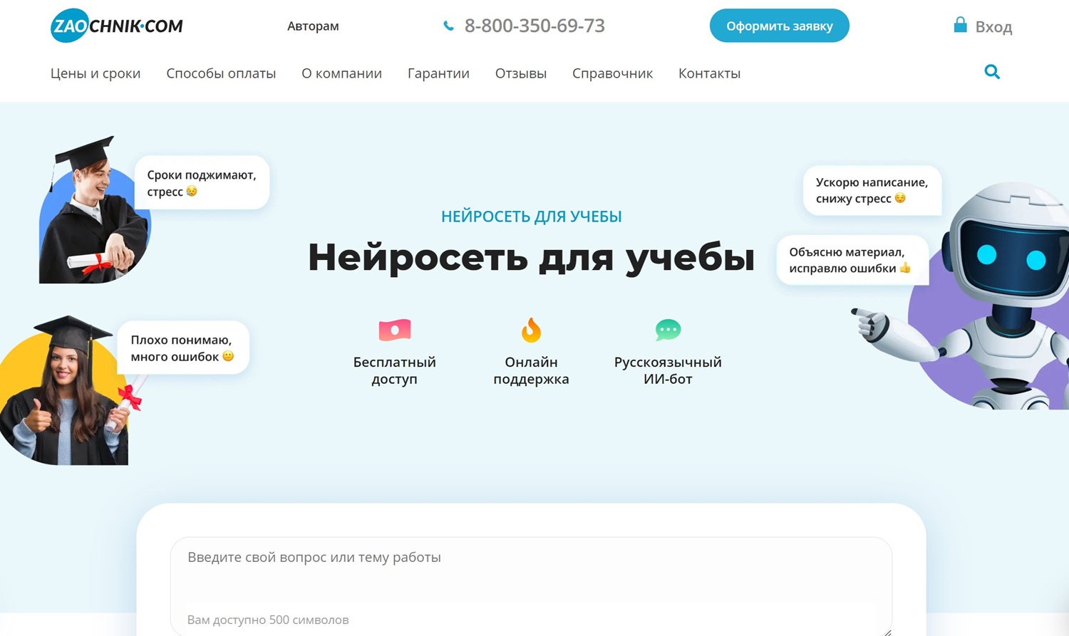 - Zaochnik — работа с опытными экспертами, которые могут помочь не только в написании работ, но и в консультировании по сложным вопросам.